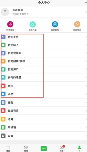 5、点开我的,可以查看我的主页、我的帖子、我的水友圈、我的招聘、我的房产等。