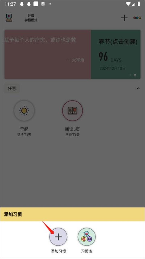 小习惯app是一款日常打卡类软件,使用该软件能够帮你养成各种日常好习惯,不管你是在考研、高考,升学,考证,还是工作学习中使用该软件都能帮助你记录,该软件加入了励志名言板块,让每天打开软件的你充满正能量,感受语言的力量,同时该软件还支持自定义设置各种习惯,你可以添加新的习惯,调整习惯的位置,软件还会自动帮你统计累计记录小习惯的时间.