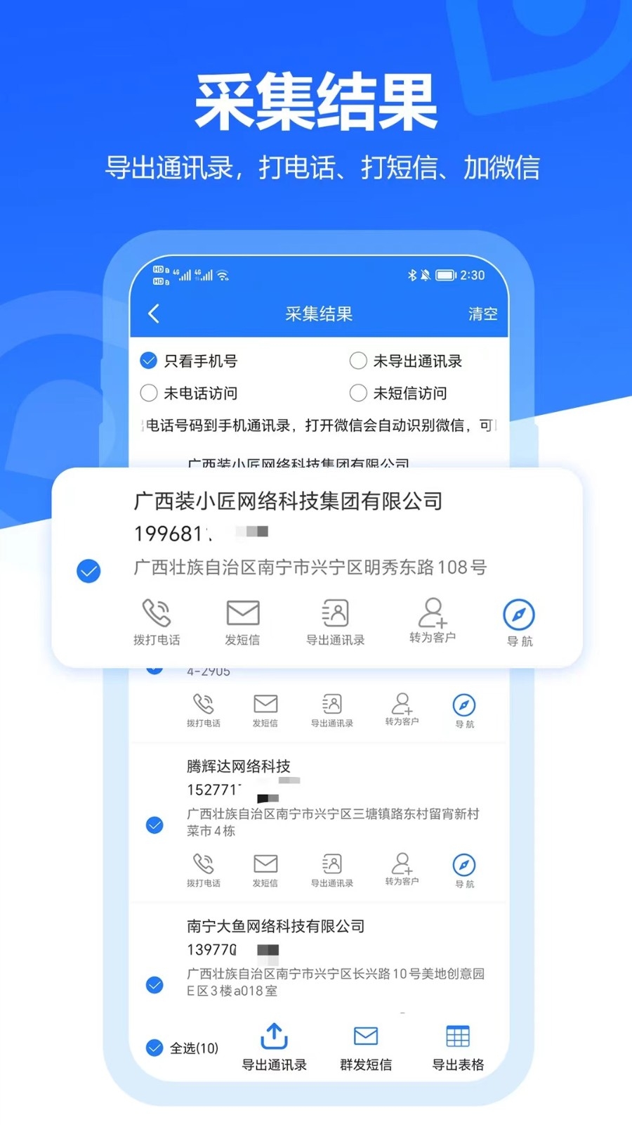 EXCEL导出:导出表格,打印给同事进行营销跟进。