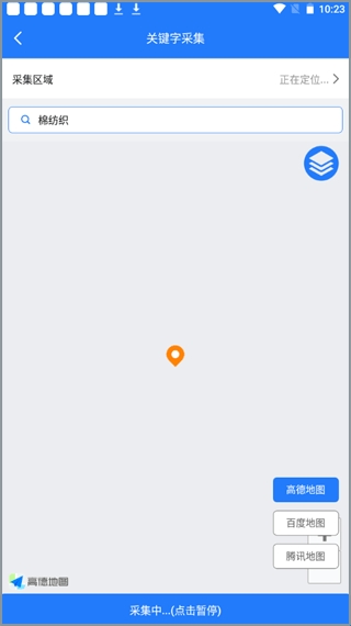 3、软件这时候就会根据你所在的位置搜索你周边的关键字资源,采集到后就会罗列到地图上方便查看。