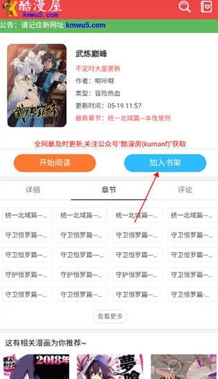 5、对于你喜欢的漫画,别忘记加入书架,这样下载才看更方便。
