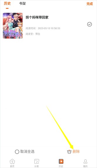 3. 点击进入书架页面后,浏览您想要移出的漫画。