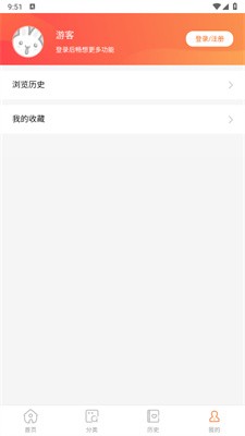 1、首页有排行、分类、更新和历史四个导航,可以根据需求点击进入寻找资源;
