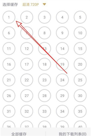 5、这时就会弹出正在播放视频的集数列表里选择想要缓存的视频剧集