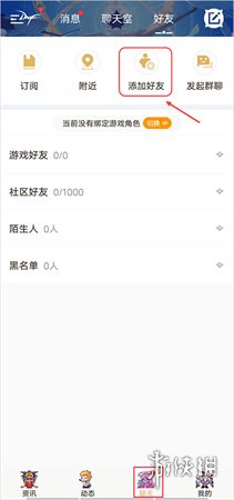 1、启动DNF助手App,进入底部的“聊天”页面,然后点击“添加好友”按钮。
