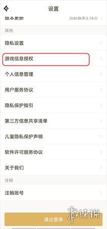 3、在设置界面中,下拉找到并点击“游戏信息授权”选项。