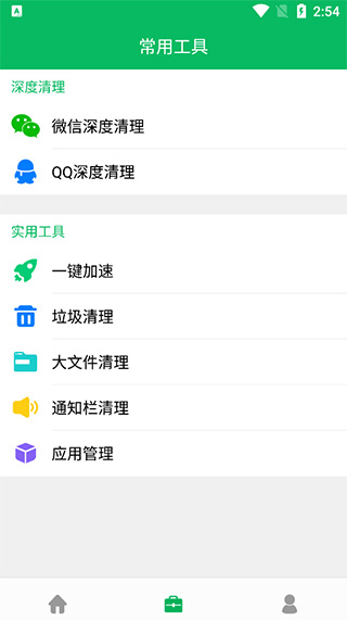 实用工具:一键加速、垃圾清理、大文件清理、通知栏清理、应用管理