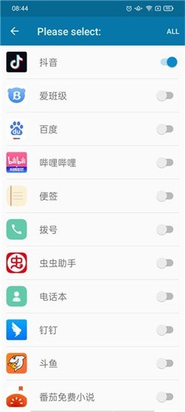 2、打开软件后,点击“Select apps”,从中挑选出你想要添加到灵动岛的应用,若想全部选中,点击右上角的“ALL”即可一键完成选择。