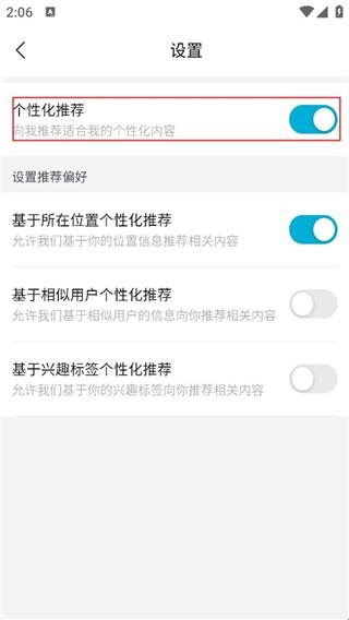 4、最后将个性化推荐关闭即可。
