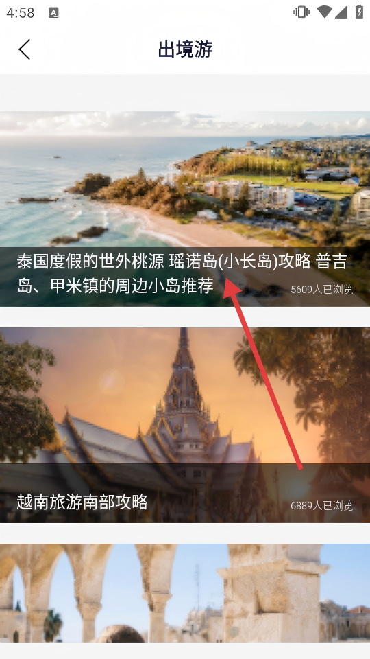 3、在出境游攻略列表页面,选择目标攻略,点击进入会员中心页面。