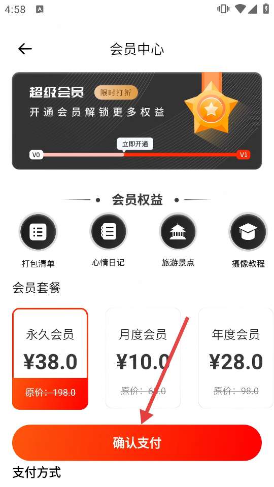4、在会员中心页面,选择会员套餐,点击【确认支付】,完成会员购买流程以解锁攻略内容。