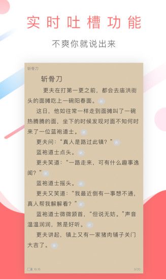 多彩主题、多种字体、仿真翻页、上下滚动、左右切换、智能书签、WIFI传书。
