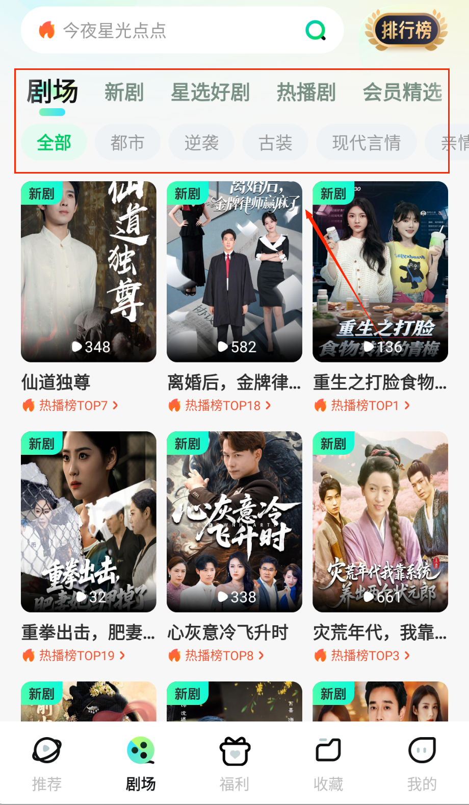 2、想追剧的话可以在剧场板块浏览,通过分类筛选或搜索找到心仪短剧,看到标注免费或热播标签的都可以直接观看。