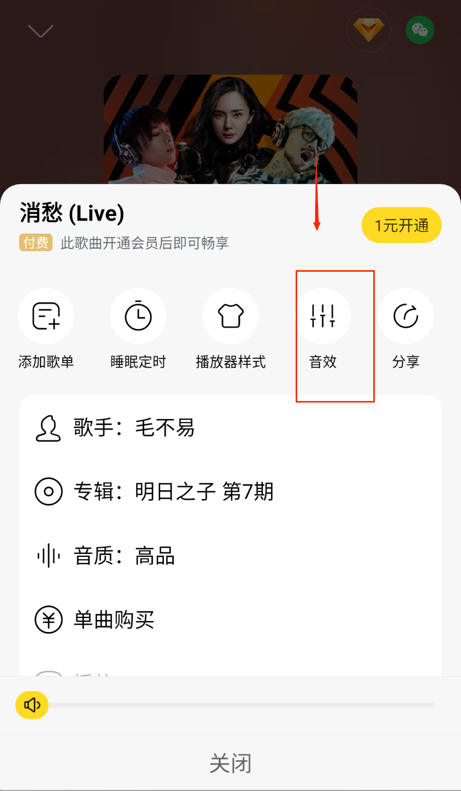 4、收听音乐时记得尝试调节音效设置,特别是节奏感强的DJ版歌曲,合适的音效能让听歌体验更加带感,发现音乐的另一面呢。