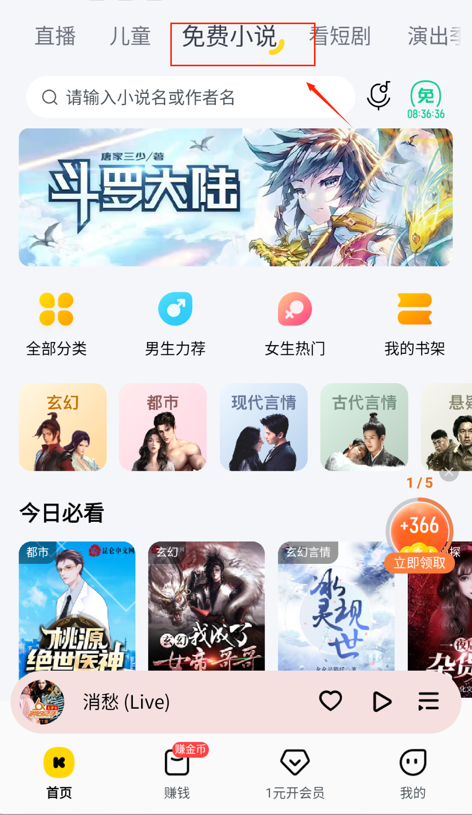 3、小说爱好者可以在“免费小说”页面找到心仪的作品,系统按类型分类展示,也可以直接搜索想看的书名或作者,阅读体验很便捷。