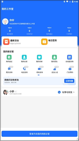 医生在此平台可以向您已添加过的患者提供专业咨询、预约门诊及诊后随访等服务。您也可以为来自全国各地的患者提供专业解答及导诊建议。妙手平台将为您在线服务提供补贴。
