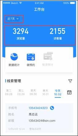 2、登录成功之后,可据不同的时间维度,查看微官网的浏览量和访客数;