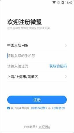 1、在本站下载打开微盟商户助手app,需要输入手机号、验证码进行登录;