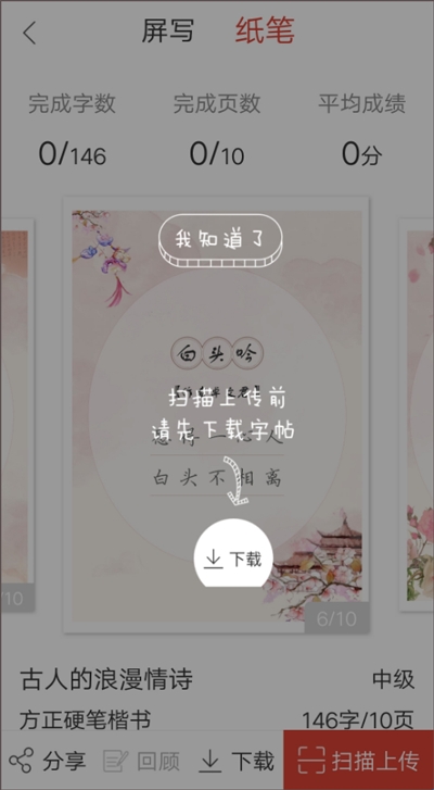 ●纸笔:将字帖下载打印出来,进行练习,练习完成后,将其扫描上传即可