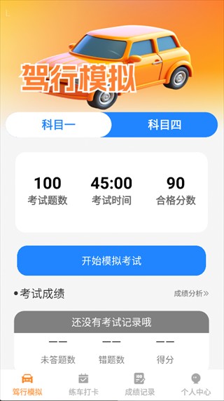 进入首页后,模拟考试功能就在眼前。你可以随时开启模拟考试,体验真实驾考氛围。考试结束后,要是想看看之前考了多少分,在首页就能直接查看历史考试成绩,清楚掌握自己的学习情况。