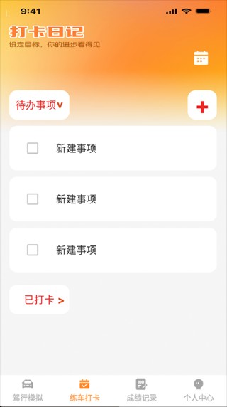通过打卡功能,激励用户坚持练车,提高练车效率。