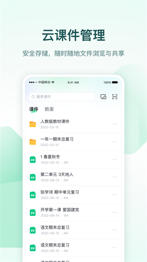 2、轻松的分享和接收:支持一键分享和接收课件,突破时间和设备限制。