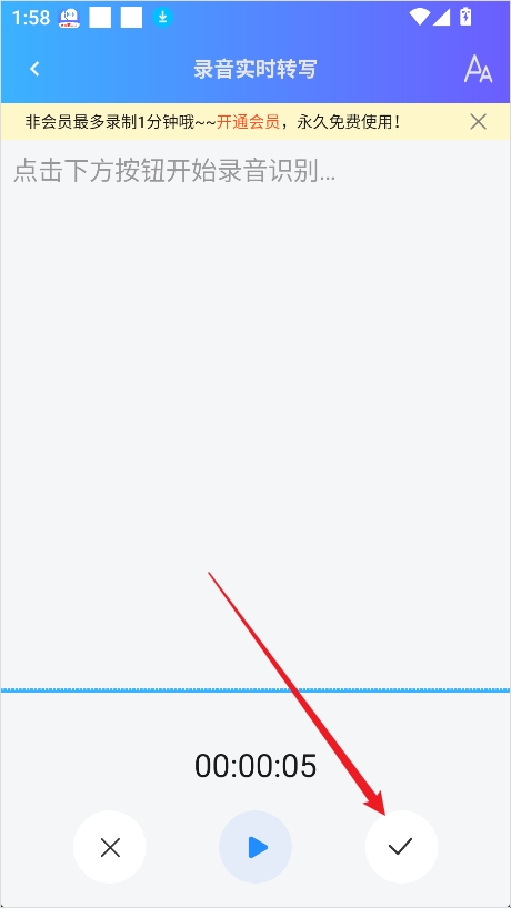 目前仅支持的音频格式有mp3、wav、m4a、amr、wma、aac,单个文件非会员60秒,且大小不超过2M,会员2小时,200M。