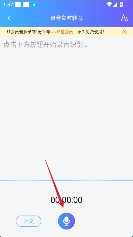 1、进入软件后点击首页位置的录音实时转文字