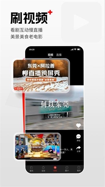 为更灵活地展示和推介视频作品,东莞+新增短视频功能,带来沉浸式竖屏互动模式。