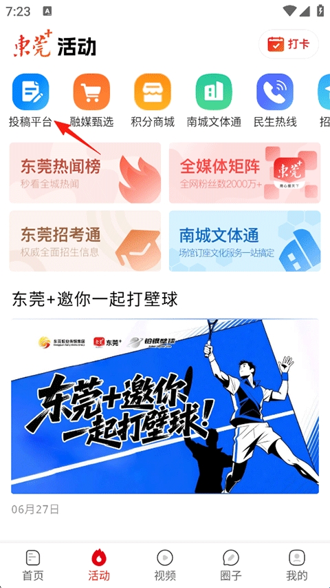 1、打开东莞+APP,在首页切换板块内容资讯或在搜索栏搜索您感兴趣的内容;