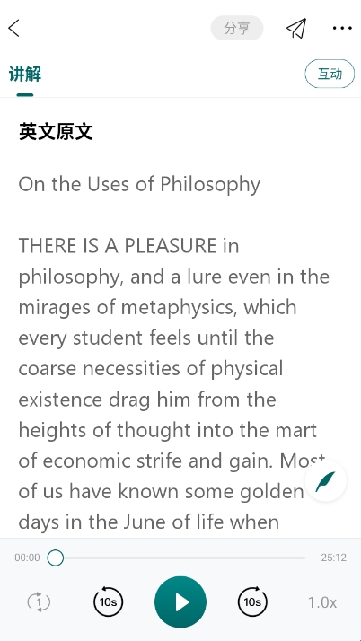 3.品读全球经典:莎士比亚戏剧、柏拉图的哲学、艾默生的经典散文、tiffany 的经世美学……内容涵盖商业、戏剧、时尚、散文、读书、传记等十几个领域,在丰富学识和谈资的同时,于潜移默化中提升你的英语能力。