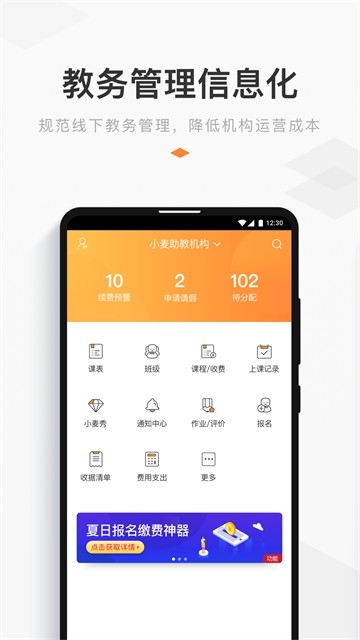 小麦助教覆盖“教务管理、招生营销、财务管理、家校互动”等教育培训学校实际场景,支持全局搜索功能为校长降低教务管理成本,全方位拓展招生途径,为日常决策提供数据支持。