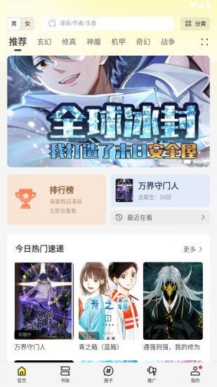 1、最全漫画库,追新神速上万部国内漫画,各类题材(热血,搞笑,魔幻等)全方面覆盖。