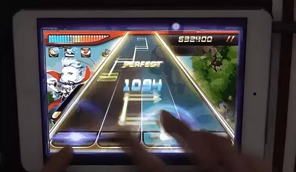 Tips2:可以的话,不要只滑到键形需要滑到的键道,可以顺着箭头方向使劲滑,滑出设备也没关系,前提是不影响下一个Note的按键。这样可以有足够的速度使有效滑动被判定为真P。