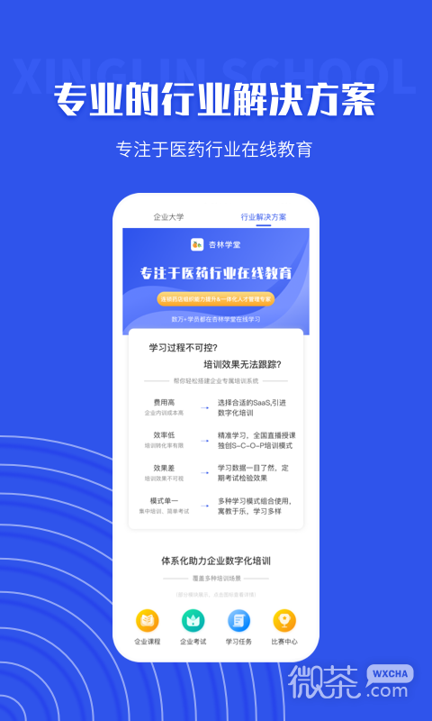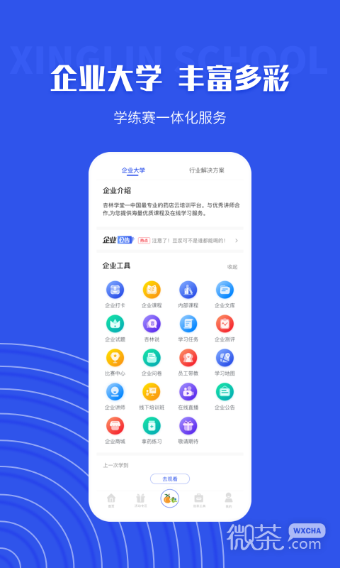3、不过它所面向的是医药行业的企业和用户朋友,平台上面不仅为用户提供了海量的课程,还为用户提供了十分全面的企业工具,帮助用户可以学习更加的便捷和全面,所以想要提升自己的用户就不要错过了