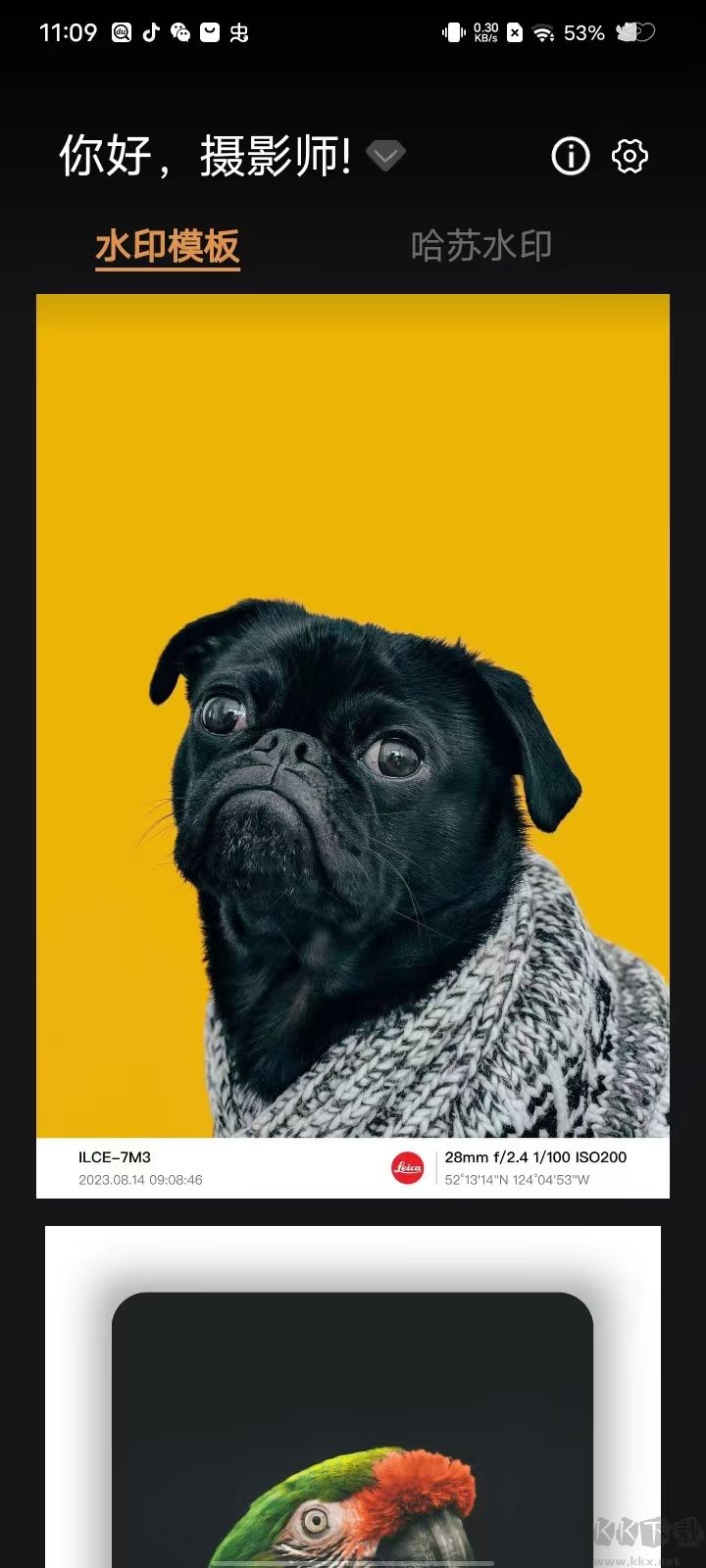 提供市面上所有品牌的水印,摄影师和摄影爱好者常用的水印,并且能够自动识别图片信息,批量添加水印,输出原画质照片。
