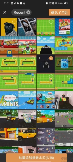 2、跳转到系统相册页面,在这里可以批量勾选想要添加水印的图片。