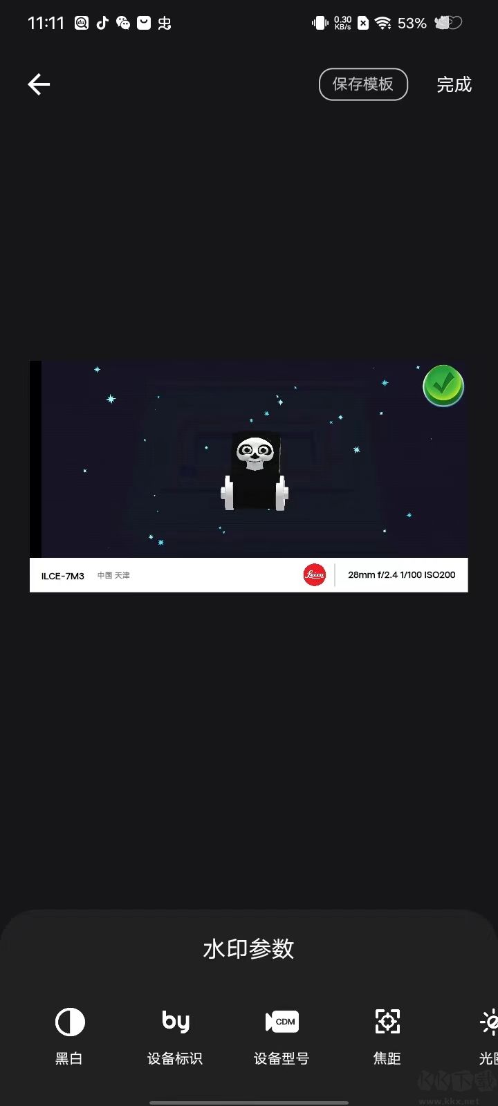 4、点击【编辑】可以进行水印参数的调整,调整好之后点击右上角的【完成】;