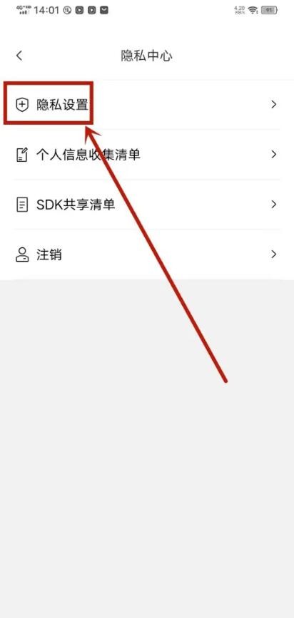 2、第二步:在页面,点击隐私设置进入。