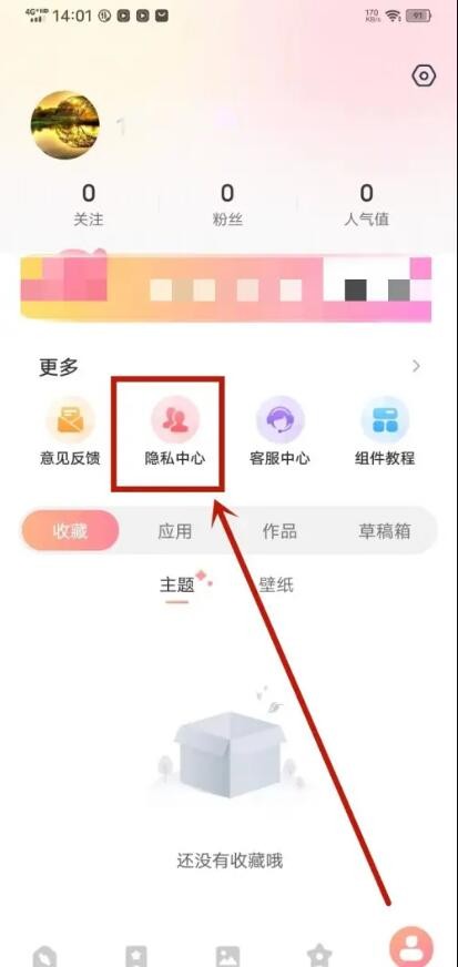1、第一步:打开风糖小组件,点击隐私中心进入。
