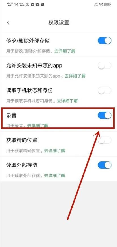 3、第三步:在页面,打开录音权限即可。