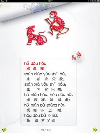 *写汉字:能学习正确的笔画顺序,会有语音提示,宝宝不仅能了解横、折、弯、钩等笔画名称,在宝宝在田字格中临摹汉字字形时。