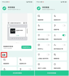 2、进入后可以看到“微信键盘”的各种功能,比如“语音转文字”、“触感反馈”、“智能加空格”、“模糊拼音”等等。