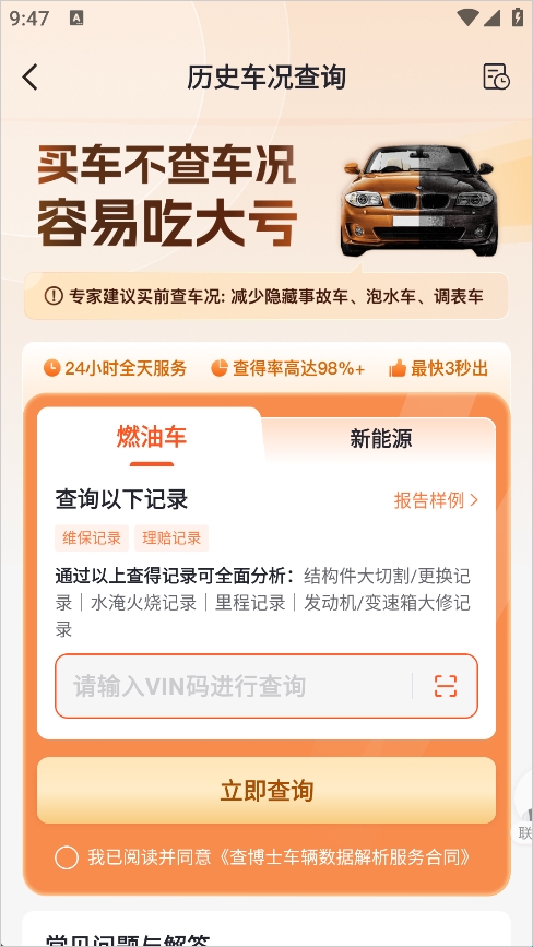 查博士app是一款非常实用的二手车查询服务客户端,可以通过平台查询车辆维修保养记录查询、二手车历史车况等,非常适合有车一族的用户,让您随时随地都可以查询自己的车辆维修记录。