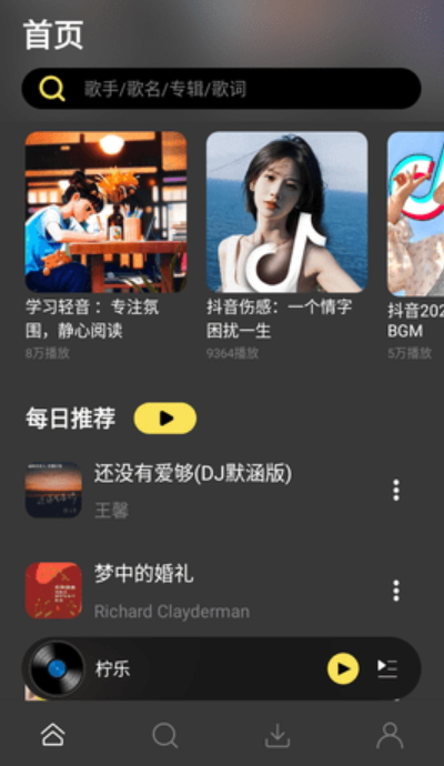 柠乐音乐最新版是一款非常好用的免费的在线听歌软件,多样化的分类,方便用户能够快速找到自己喜欢听的歌的类型,每天都会同步更新抖音热歌和歌手专辑,在这里用户们可以听到各种各样的音乐,喜欢的快来下载柠乐音乐APP体验体验吧。