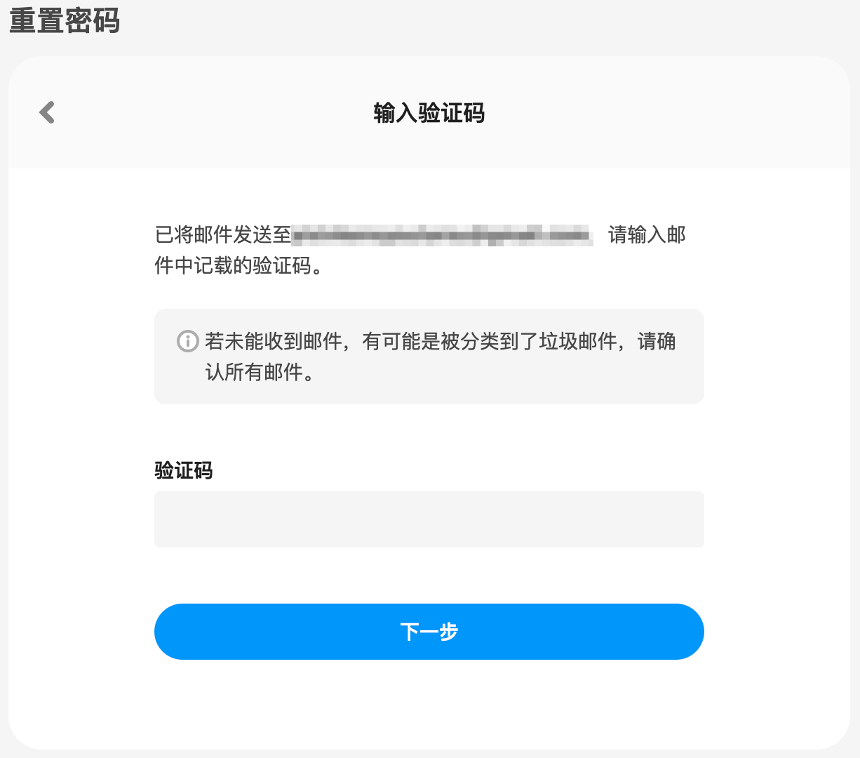 3、请将重置密码邮件中所记载的验证码,输入至验证码栏。
