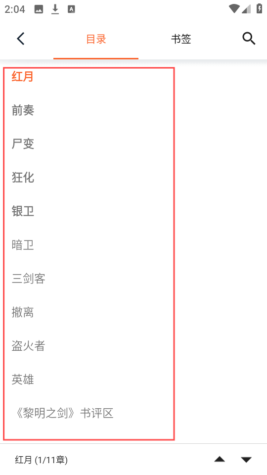 5、随意点击阅读界面,可以查看这本小说的全部目录内容。