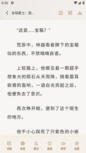 3、您可以修改设置功能、屏幕亮度、字体大小和翻页模式。根据读者想法进行专门自定义,适合你的读书习惯。