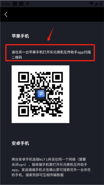 3. 如果选择接收,只需用另一台手机扫描显示的二维码并发送相应数据即可完成操作。