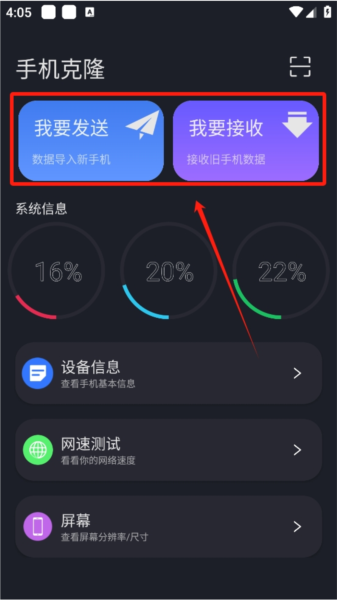 1. 首先启动乐元换机互传助手,在软件界面中选择执行发送还是接收任务。